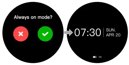 You can quickly change the clockface by simply swiping right from the home screen of the watch. When you would like to set the screen, wait on the clock face until the green “tick” icon appears. This will confirm that the new dial has been selected.