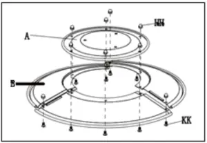 Assemble the reflector (A+B) with screws (KK) 9pcs and Nuts (HH) 9pcs.