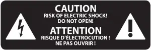 To reduce the risk of electric shock, do not remove the top cover (or the rear section). No user serviceable parts inside. Refer servicing to qualified personnel.