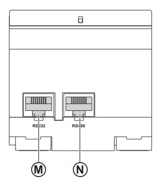 Sealable transparent coverG H IP reset buttonI RS485 traffic status LEDJ Device soft restart button (accessible closed cover)K RS232 traffic status LEDLDevice name labelM RS232 portN RS485 portO Grounding connection