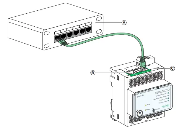 A Ethernet Switch with Endspan PoE portsB Ethernet 1 communication portC Ethernet 2 (PoE) communication port