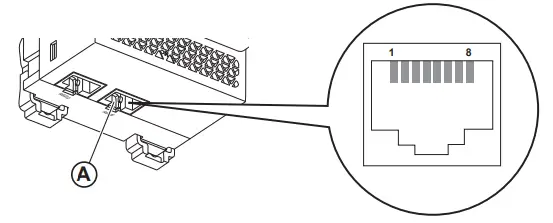A ETH1: Ethernet 1 communication portB ETH2: Ethernet 2 (Power over Ethernet) communication portC 24 Vdc power supply terminal blockD Ethernet communication LEDs: