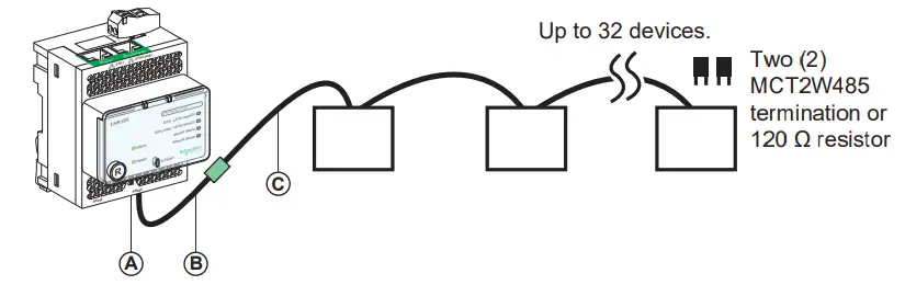 A RS485 serial portB Link150 cable adapter*C Belden 8723 or 9842