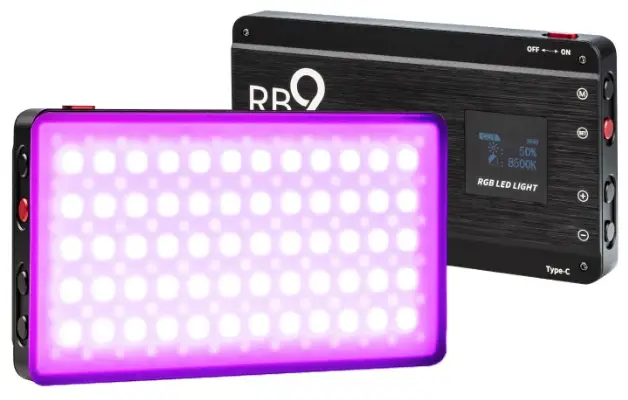 Weeylite RB9 professional photography fill light is provided with multiple high CRI (pure white + warm white) LEDs and high-quality RGB LEDs. It features low energy consumption, stable color temperature, energy saving, and a long service life. The color temperature and brightness ratio can be adjusted freely according to the scenes. A variety of modes can be widely used for portraits, macro shooting, interview lighting, broadcasting video, mobile phone recording, etc.