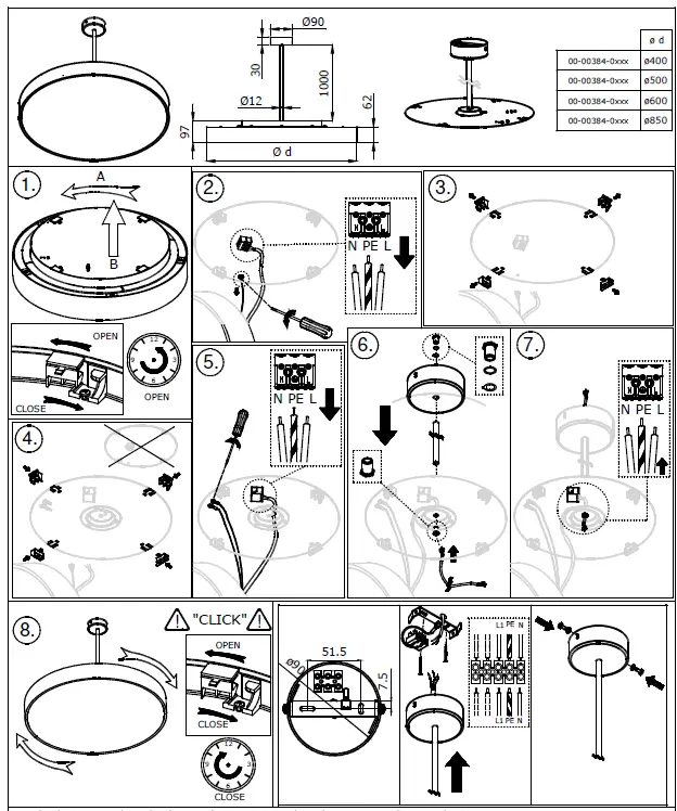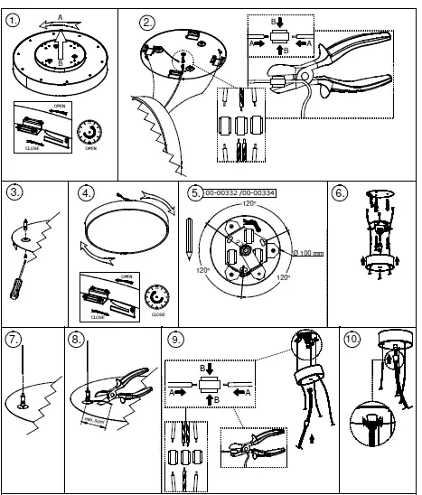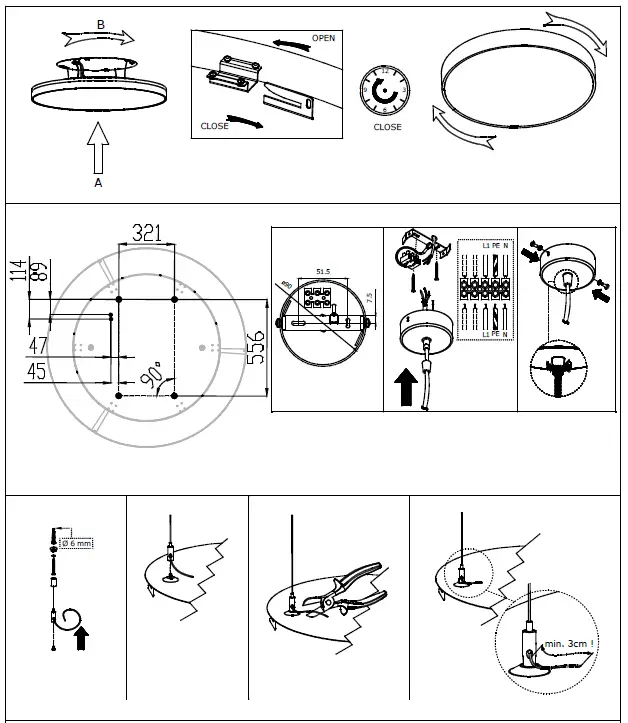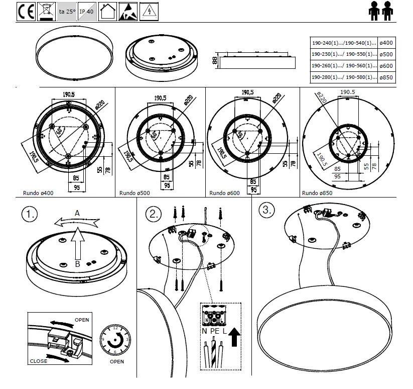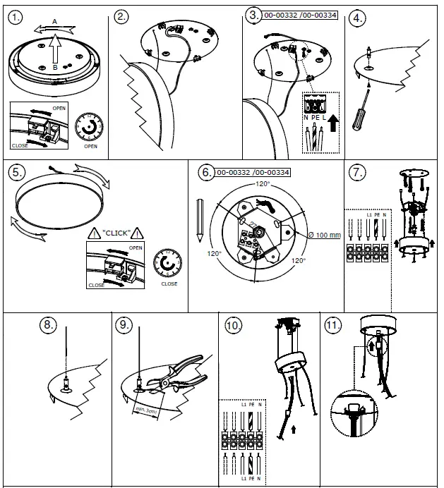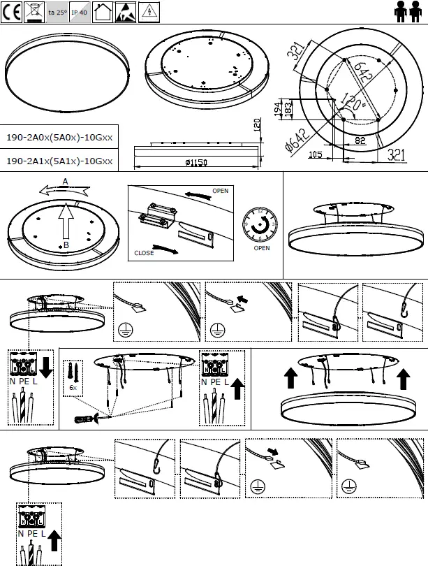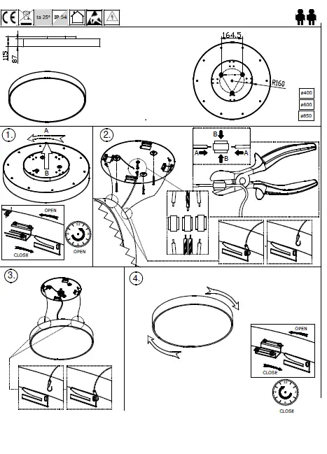 The installation may only be carried by authorized specialists. Always switch off the power supply before carrying out any maintenance. The manufacturer is not responsible for the incorrect use and assembly of its products. The light source in this luminaire may be replaced only by the manufacturer or its contractual service technician or a similarly qualified person! The installation may only be carried out by an authorized specialist. Always switch off the power supply before carrying out any maintenance The manufacturer is not responsible for the incorrect use and assembly of its products.