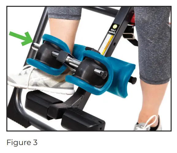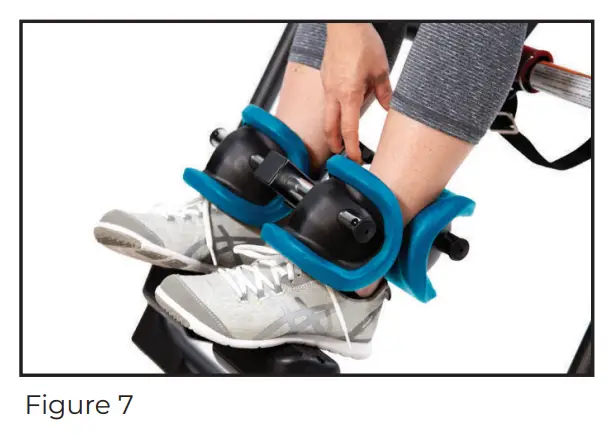 If there is too much distance between the ankle cups and tops of your feet, adjust the foot platform (Ankle Comfort Dial) by rotating to either the high or low setting to move foot placement up/down (Figure 6).