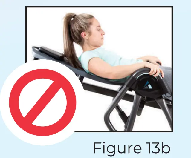 DO NOT lift your head or try to sit up. Avoid relying only on the handles to pull yourself up. This will only cause stress on your back and will not aid you in returning upright. If your FitSpine isn’t responding as you desire, see Troubleshoot: Find Your Balance on the next page. Figure 13b