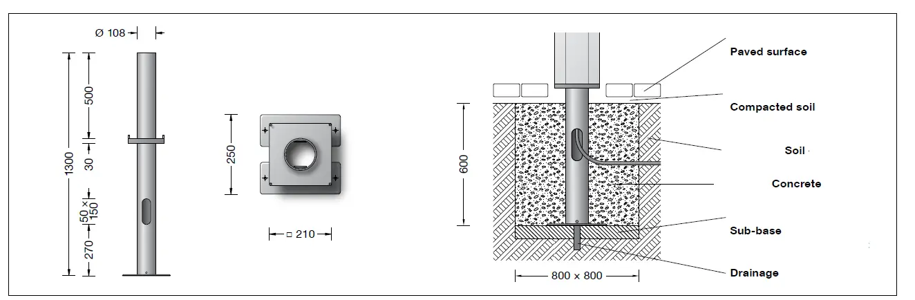 - The above exemplary recommendation for a foundation is only applicable for a stable subgrade and light building element 84 065. Lead underground cable into the mounting base.