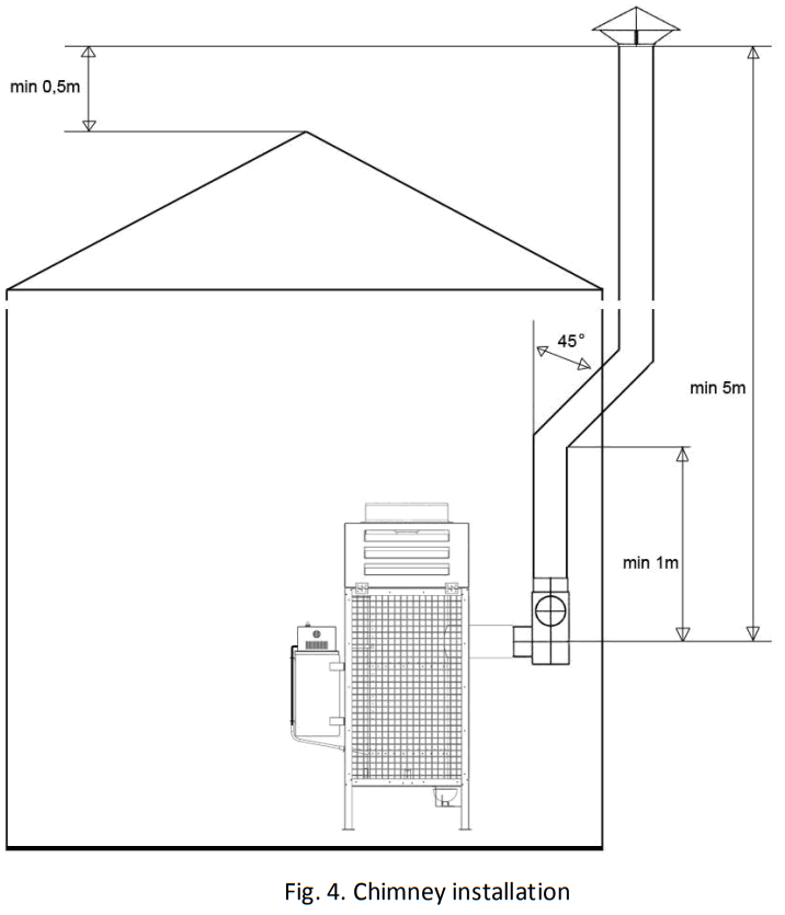 A properly constructed chimney installation is necessary to ensure proper combustion.