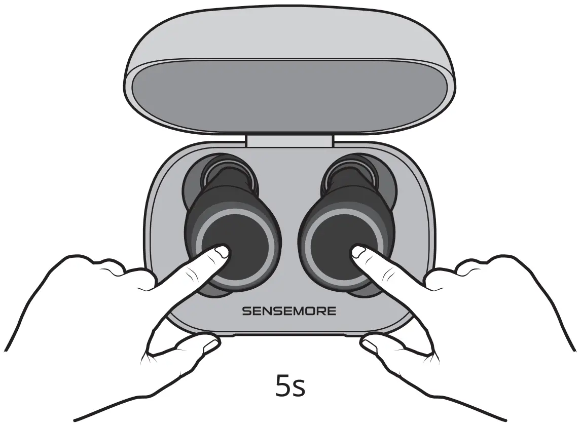 Touch the earbuds and hold for 5s while they are in the charging case. Earbuds will blink once in blue upon completion of Master Reset. Master Reset is reserved for cases where users encounter issues while earbuds are in use or during situations such as: