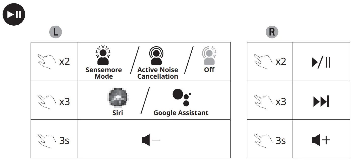 - Adjust noise control level through Sensemore Mode, Ambient Mode, and Active Noise Cancellation