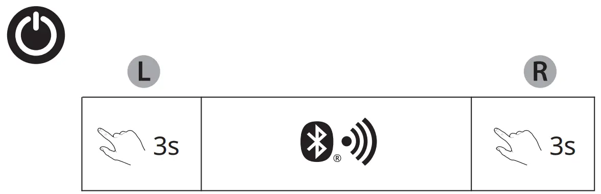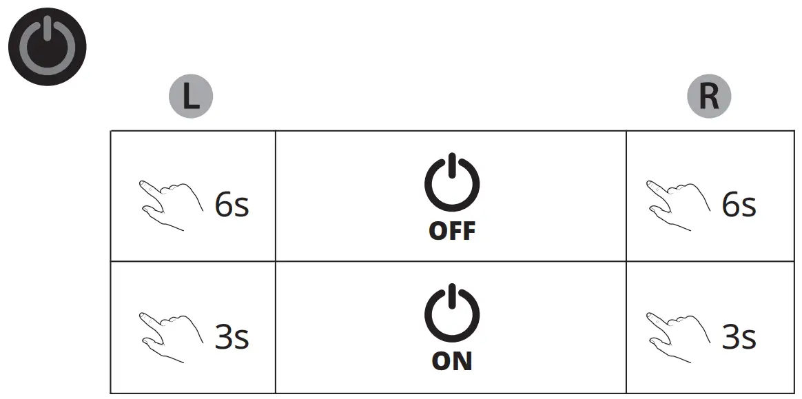 Note: The earbuds can only manually enter Bluetooth Pairing mode when no audio is being played. - Powering On / Off Earbuds Manually