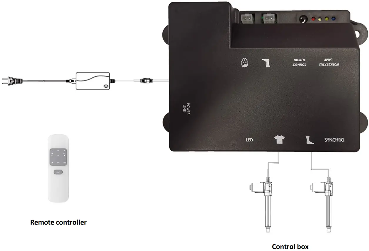 Motor: By pairing the remote control with the control box, the motor can be controlled up and down