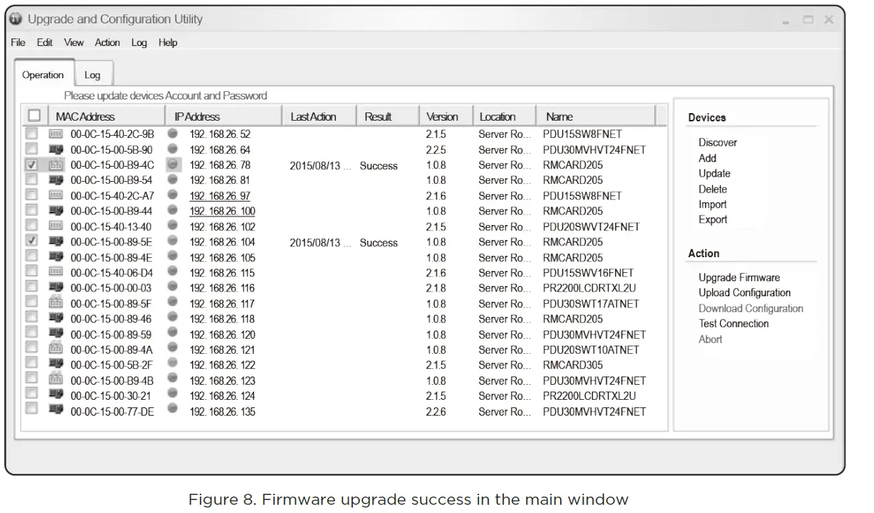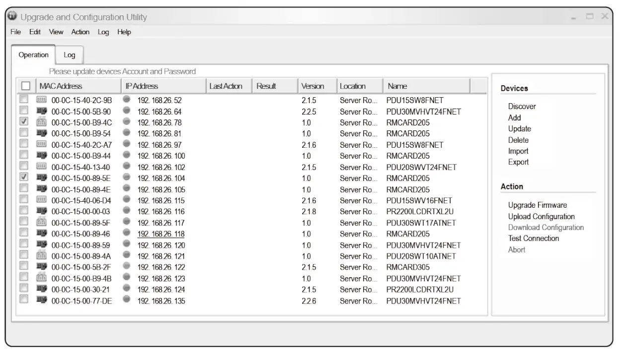- The main window of the Upgrade and Configuration Utility tool program is shown in Figure 5. The configuration tool will display all CyberPower Remote Management devices present on the local network subnet. The “Discover” button is used to search the local network subnet again.