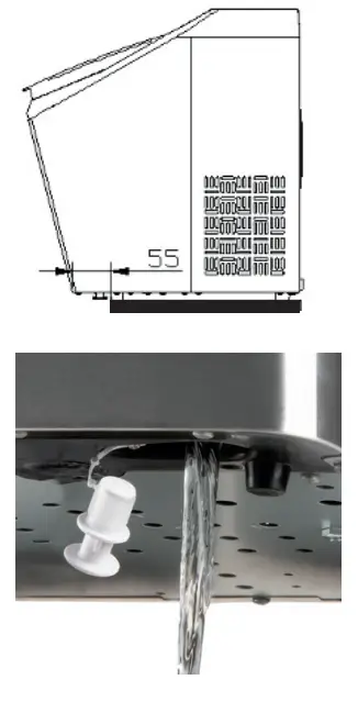 - Place the ice cube maker on a flat and stable surface and make sure that the ventilation openings are not blocked. Make sure the drainage hole on the bottom of the unit is closed.