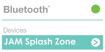 Turn on the speaker. Enable Bluetooth ® on your device and choose JAM Splash Zone from the list. If prompted, enter code “0000.”
