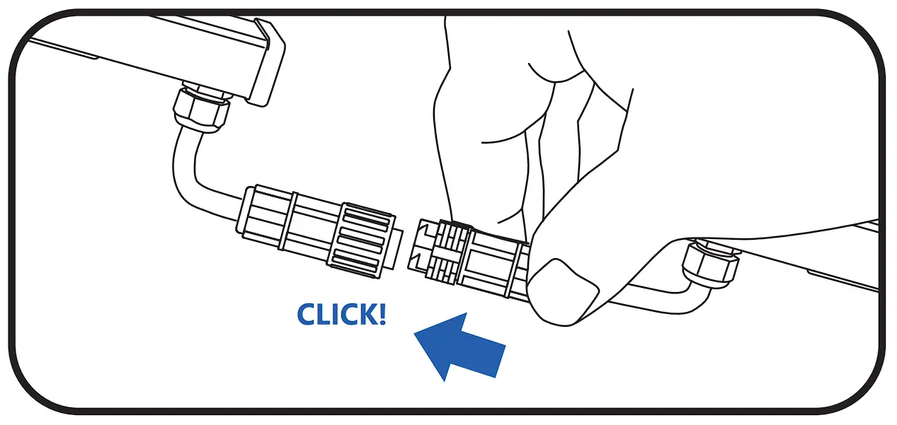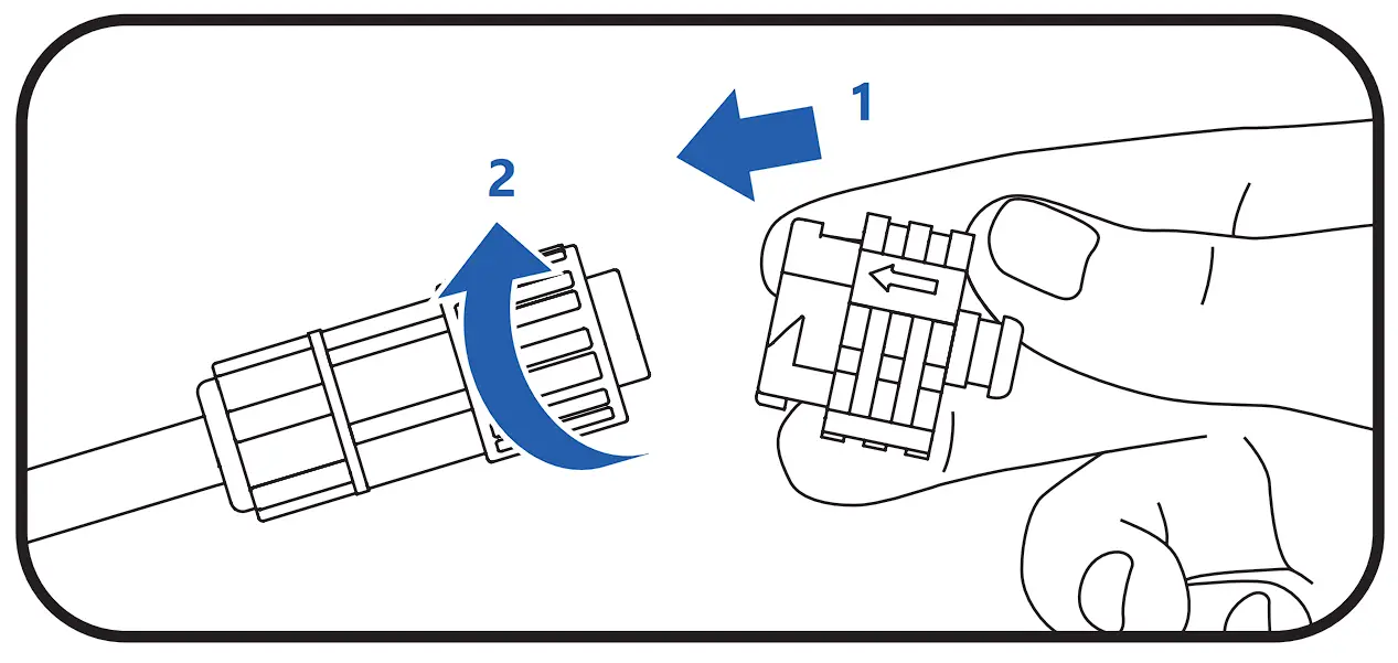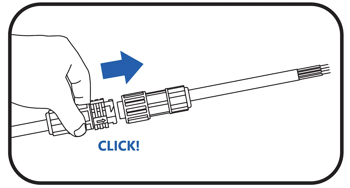 3A Remove end cap from the female connector. Insert the male connector to the female connector. Make sure the connector is fully engaged as indicted by hearing a click.
