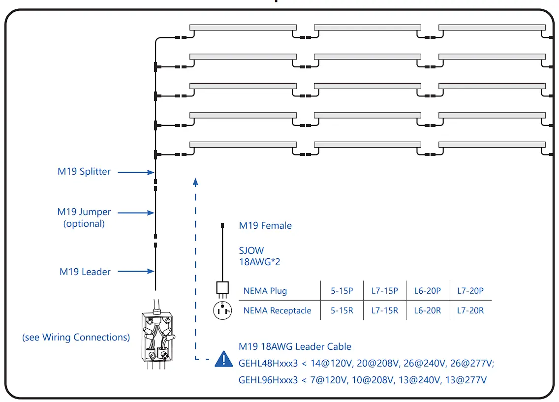 | M19 Leader Cable (NA) | 93142247 | GECA30A18-CC10B | 10ft (3.0m) Leader with dimming |