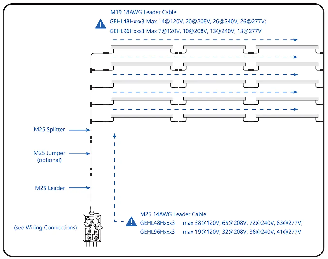 | M25 Leader (NA) | 93142253 | GECA30A14-CG06B | 6ft (1.8m) Leader with dimming, 15A, NA |
