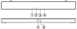 - LED: The LED indicates the pairing status with the soundbar. It will illuminate solid blue when paired and will flash blue when not paired.