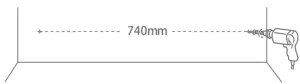 Next, using a tape measure and a pencil, mark potential drill locations on the wall exactly 740mm (29.13″) apart. Use a carpenter’s level to ensure that the locations are level. This kit includes two screws and two wall anchors, which can be used for either the satellite speakers or the soundbar. If you want to mount both the satellites and the soundbar to the wall, you will need to obtain two additional screws and wall anchors.