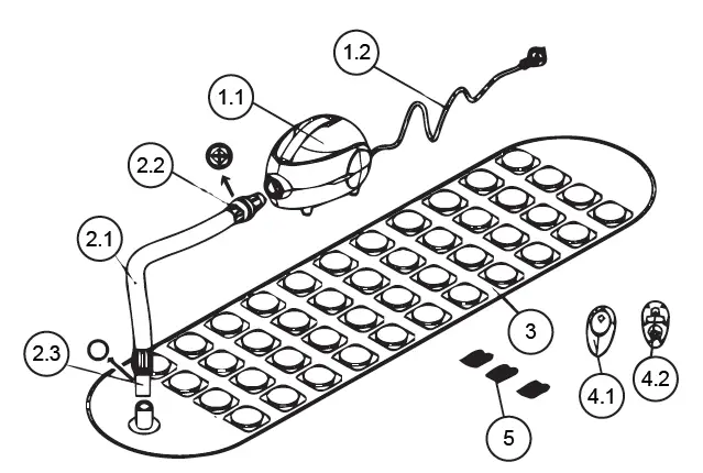 The hose end (fig 2.2) should be plugged into airflow hole of the main unit, and another hose end (fig 2.3) should be connected to the bath mat (fig 3).