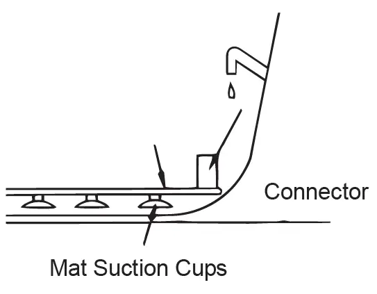 - Place the bath mat into bathtub and press it down. Use suction cups to stick the bath mat firmly to the tub (it must not slide around). The suction cups will stick better if they are slightly wet. The connector on the bath mat is on the end where your feet should be.