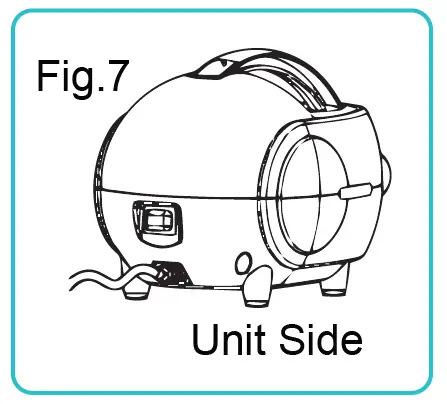The ON/OFF switch is on the back side of the (Fig.7). You can find the ON/OFF on the back of the unit.
