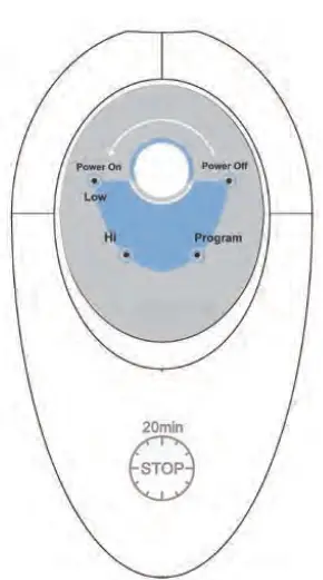 “I” : The device will be turned on without using remote control and will run at low intensity level. In this mode, you can still use the remote control to adjust the intensity level and turn off the product.