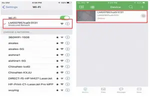 - Open smartphone settings, search and connect to the camera’s wireless signal named “AI/LM……”,wait Wi-Fi connected, and phone status bar appear Wi-Fi