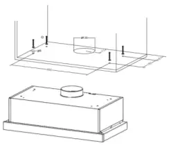 Decide on the position of the hole for the air outlet: The hole must be in the ceiling, according to your requirements, but must be in vertical line with your hood. Bear in mind that the hood can expel air through the top air outlet only.