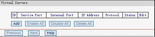 Click Forwarding->Virtual Servers on the left side, and then click Add button.