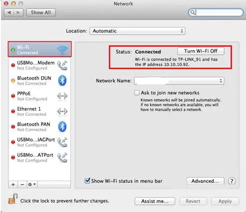 Note: If your computer is connected to a wireless network please click Wi-Fi icon.