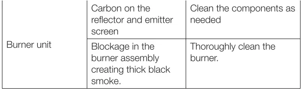 - Carbon deposits may create a fire hazard. Clean the dome and burner screen with warm soapy water if any carbon deposits develop.