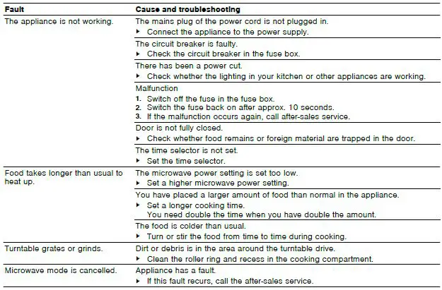 - Check whether the cookware fits in the cooking compartment and that the turntable can turn freely.
