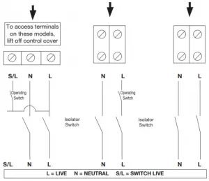 It is recommended that the fans be connected into the lighting circuit, with double pole (3mm) isolation provided before the room light switch and suitably fused, in accordance with current IEE Regulations.