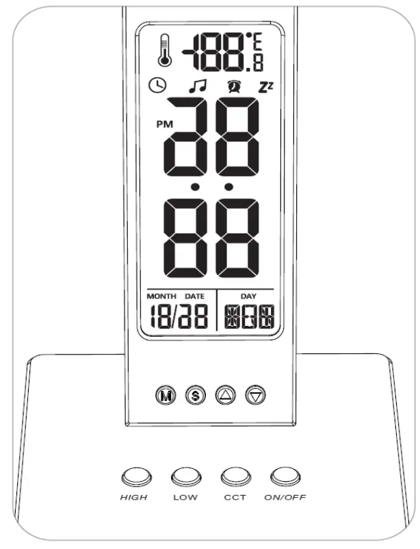 buttons to set the snooze time between 1 to 60 minutes and press the button S again. The number of the alarm tone flashes at the bottom of the LC displays.