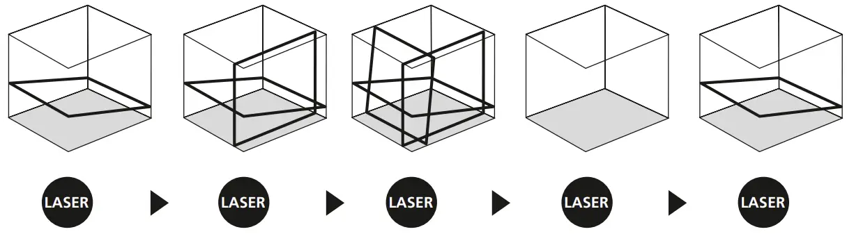 The laser cross will appear. The laser lines can be switched individually with the selection button.