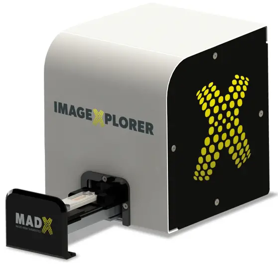 The ImageXplorer is manufactured by MacroArray Diagnostics (MADx)