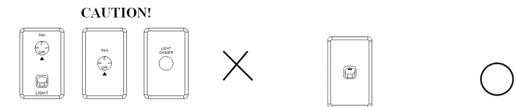 | Rated Load | Motor: Max.0.75A, Use with the AC motor of ceiling fan only Light: Max.100W, 100VA LED, Non-dimmable |