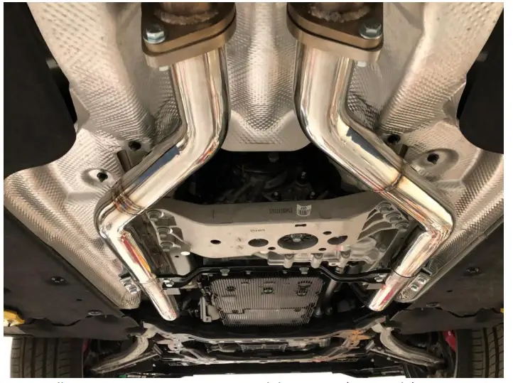 - Install the secondary downpipes to primary downpipes(slip fit connection) and to catback exhaust using provided hardware.