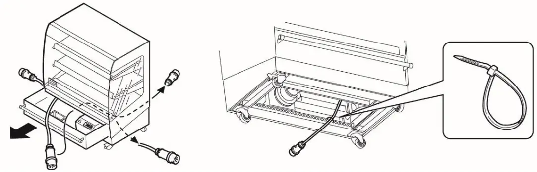 ![]() | WARNING The top and bottom of the trays and columns at the back of the unit can be very hot |