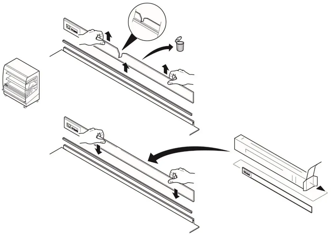 - Remove the foil from the illuminated sign, shelves and child guard.