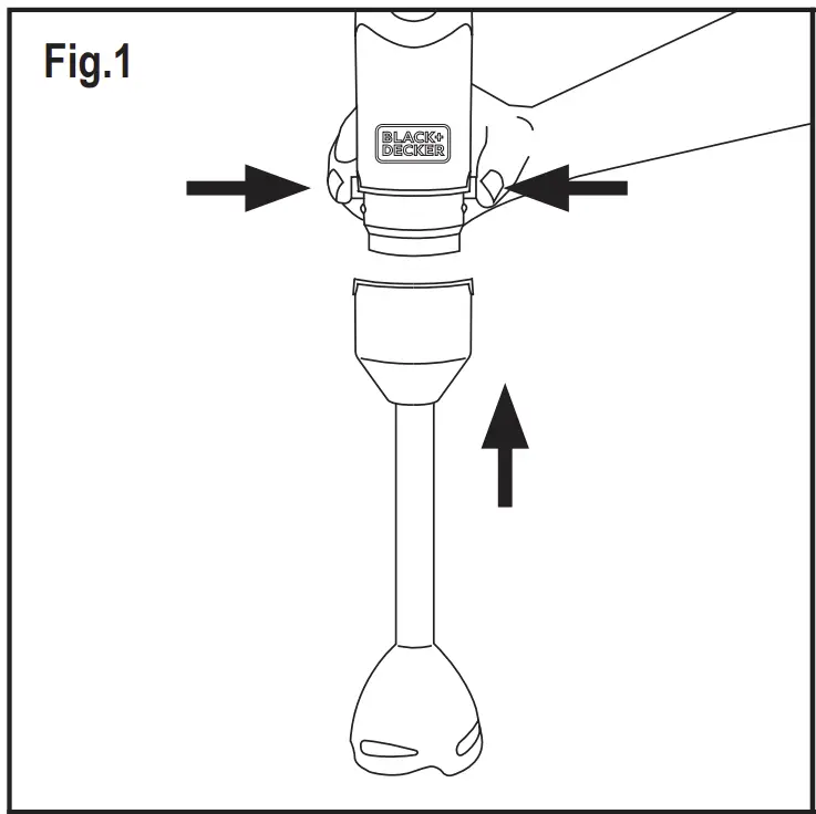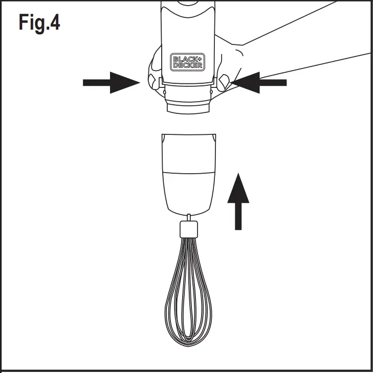 - Insert the whisk into the adapter. Join this unit to the motor unit by pressing until you hear click (Fig.4).