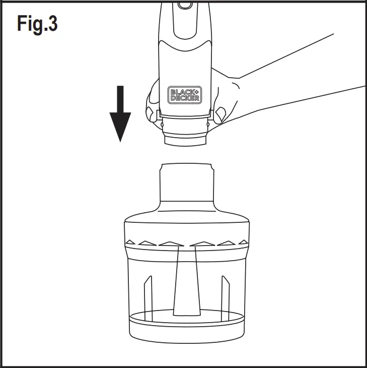 - Fit the motor unit to the lid by pressing until you hear a click (Fig.3).