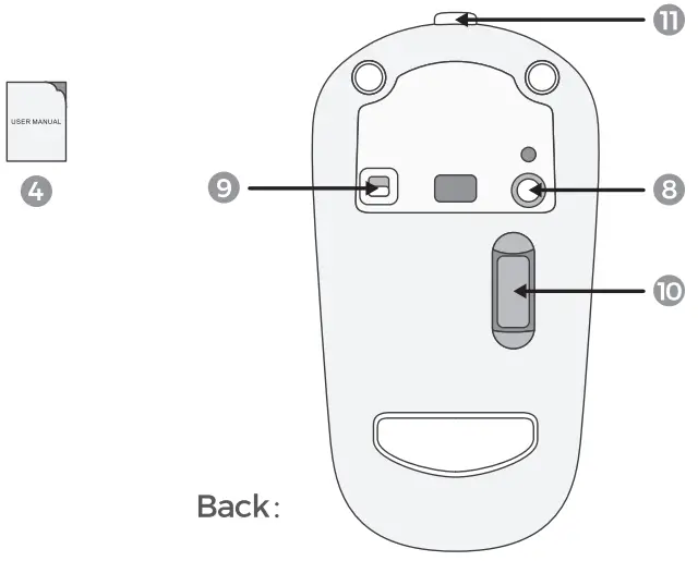 - The mouse has 3 light effect and turn off modes. Short press the light changing key at the bottom to switch among light modes.