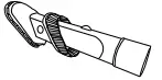 - Insert the end of the flexible hose into the main body by aligning marks as shown in UNLOCKED (for cleaning). Rotate the hose until marks align as shown in LOCKED (for use). Then run the flexible hose over the lower hose storage and the upper hose storage. Insert another end onto the top of the extension wand.
