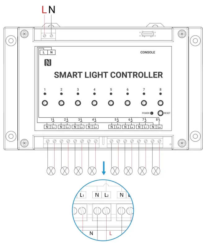 - LN type or switch type optional, controls up to 8 circuits of lights, adopts different indoor wiring