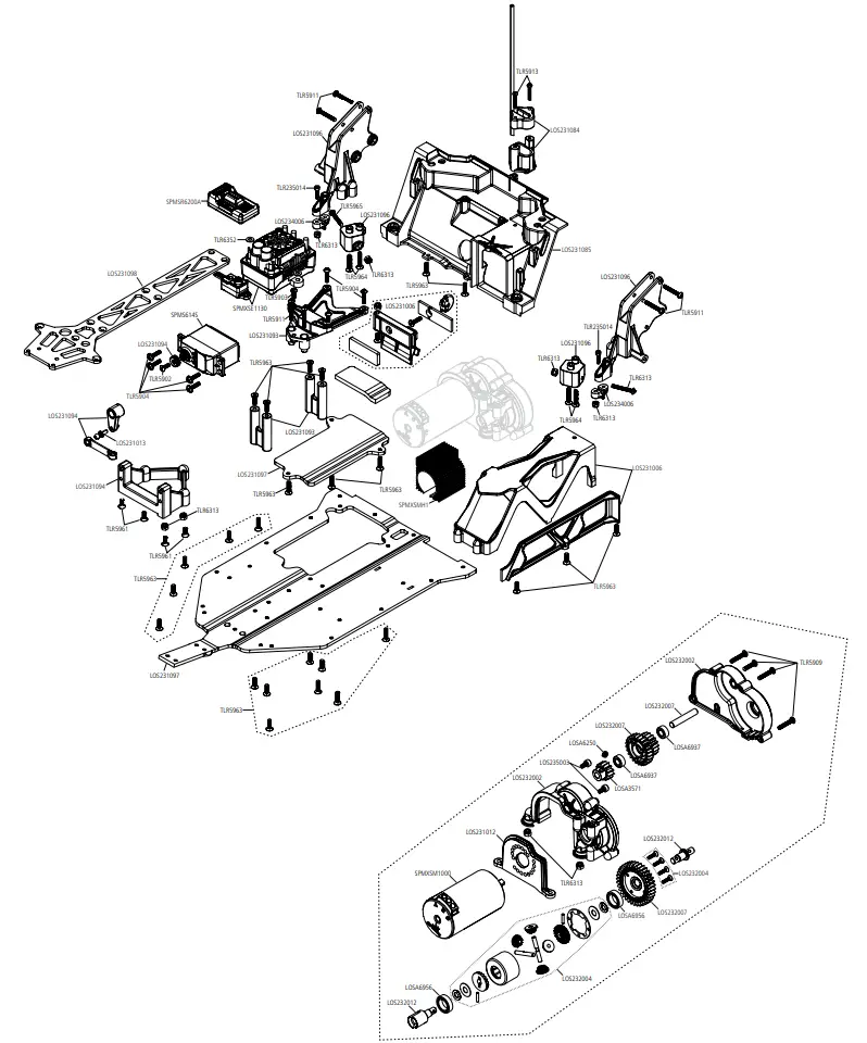 | LOS231097 | Chassis w/Motor Cover Plate |