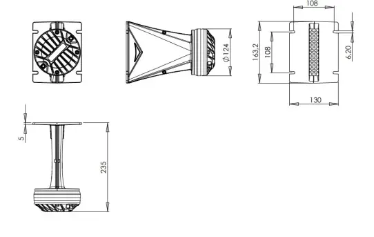 | Recommended Crossover1 | 0.8 kHz | Dimensions 163x130x235 | mm (6.4×5.1×9.3 in) | |